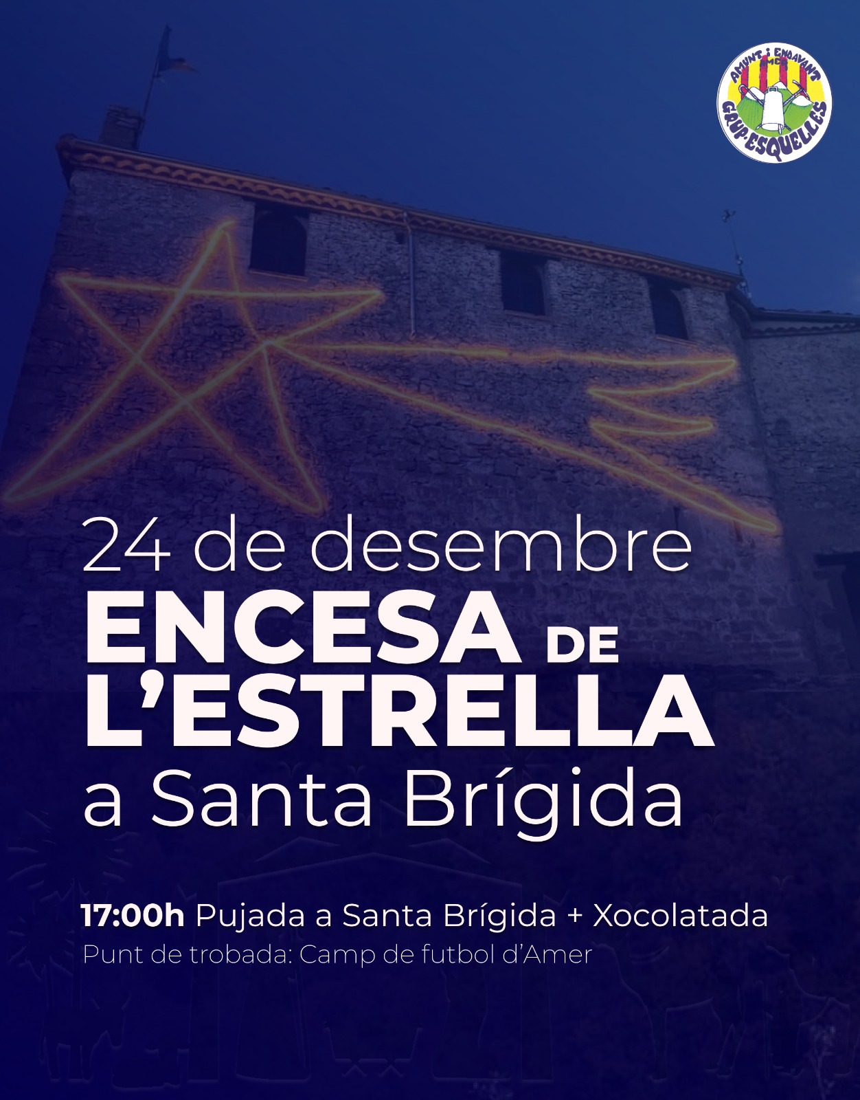 El 24 de desembre, encesa de l’estrella a Santa Brígida.A les 17.00 h, pujada a Santa Brígida i xocolatada.Punt de trobada: camp de futbol d’Amer. Organitza: Grup Esquelles Amer