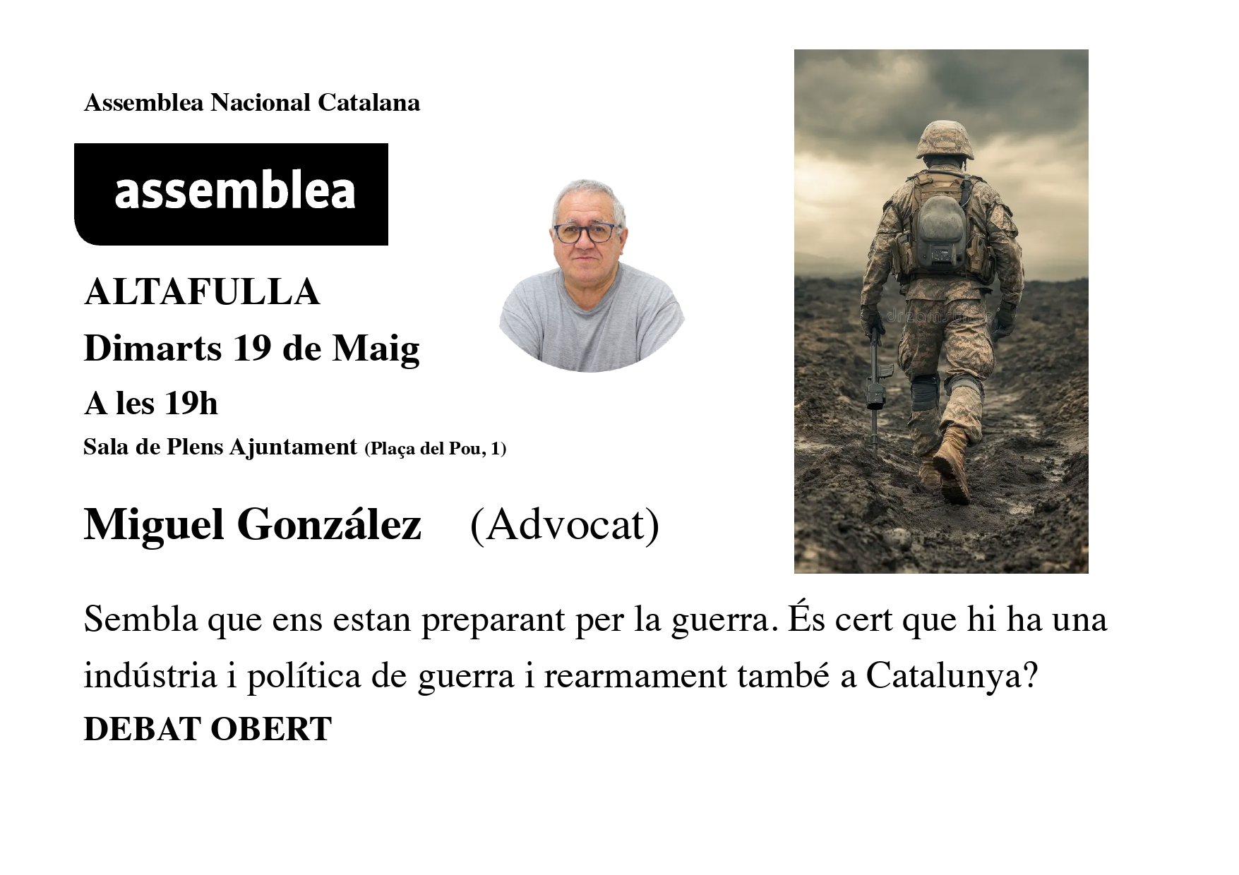 L'indústria i política de guerra a Catalunya? se celebra el dimarts, 19 de maig del 2026, a les 19:00, a Altafulla.