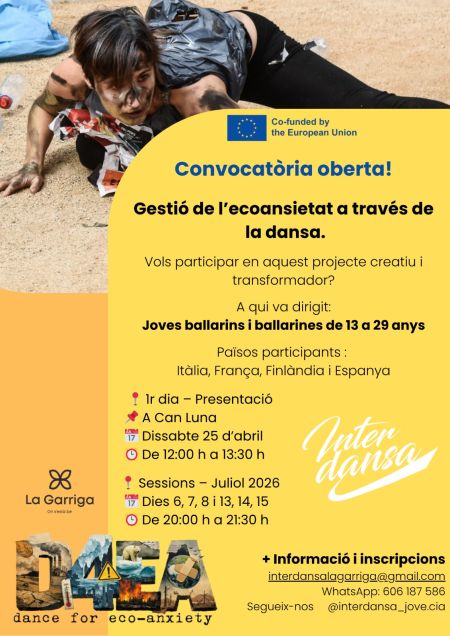La presentació del projecte "Gestió de l'ecoansietat a través de la dansa" se celebra el dissabte, 25 de abril del 2026, a les 12:00, a la Garriga.