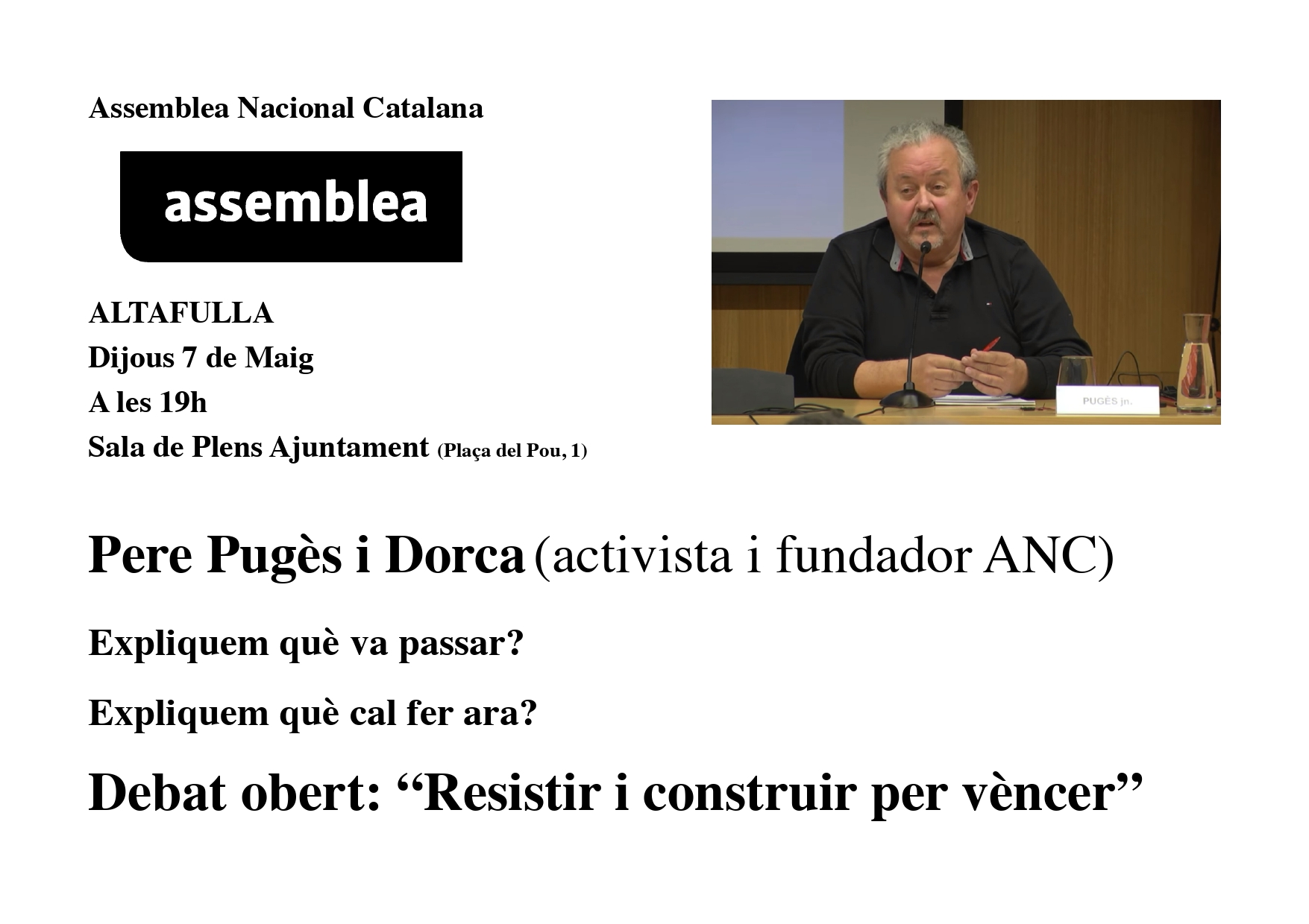 El resistir i construir per vèncer se celebra el dijous, 7 de maig del 2026, a les 19:00, a Altafulla.