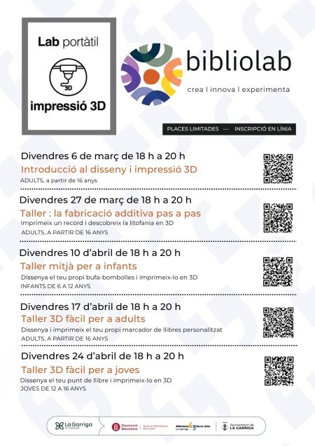 El taller 3D fàcil per a Joves se celebra el divendres, 24 de abril del 2026, a les 18:00, a la Garriga.