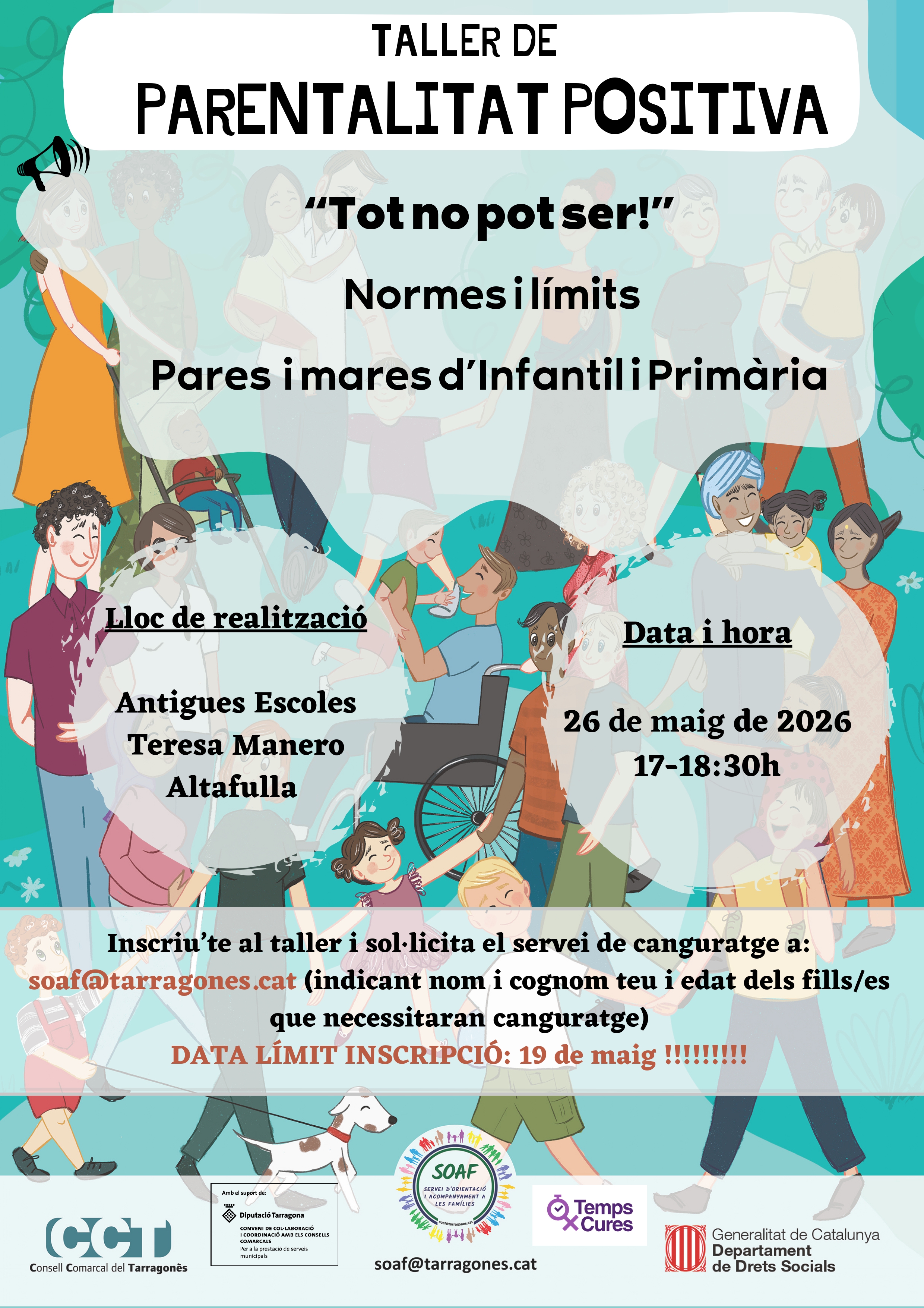 El taller de Parentalitat Positiva: "Tot no pot ser! Normes i límits" se celebra el dimarts, 26 de maig del 2026, a Altafulla.
