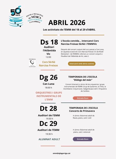 Els diàlegs del món se celebran el domingo, 26 de abril de 2026, a las 18:00, en La Garriga.